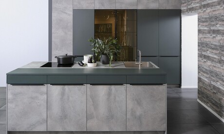 Auf der Suche nach einem besonderen Farbton für Ihre neue Küche – mit allem anderen als Allerweltsfarbe? – Unser Küchenbeispiel zeigt, welche eleganten Grün-Töne es gibt, gerade wenn sie mit Schwarz- oder Grauanteilen versehen wurden. Entsprechend lässt sich Blackgreen perfekt mit Grautönen kombinieren. Generell machen Grüntöne sich aber auch klasse zusammen mit Goldelementen, z.B. in Form von Beschlägen oder Lampenschirmen.
